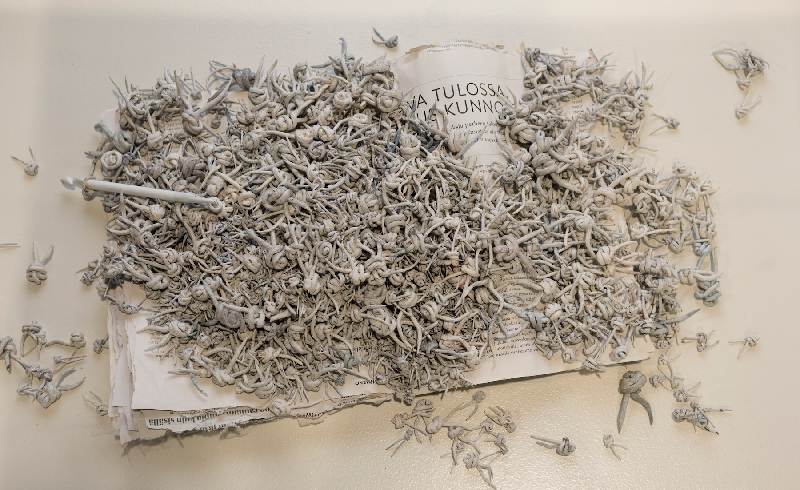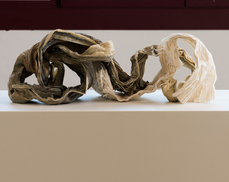 Einige Arbeiten sind selbstreferenziell: Die KünstlerInnen treten als AkteurInnen des Wandels auf, indem sie das Material im Entstehungsprozess manipulieren, es vollständig transformieren, Neues schaffen und die Vielseitigkeit des Materials bis an ihre Grenzen ausloten.